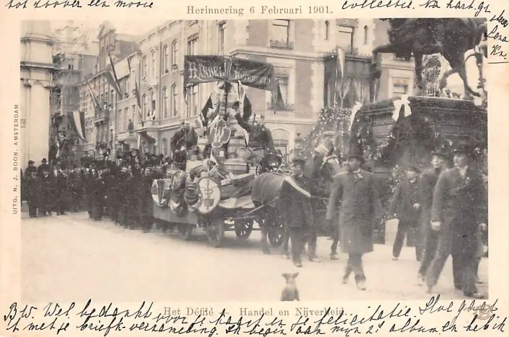 Uitg. N.J. Boon, Amsterdam. Gelopen ansichtkaart met postzegel en stempels 1901.\\r\\n\\r\\nHuwelijksfeesten t.g.v. Huwelijk Koningin Wilhelmina en Prins Hendrik. Koningshuis.