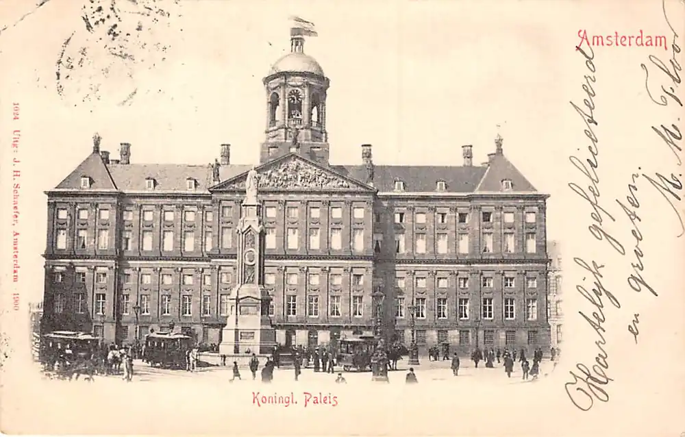 Amsterdam Koningl. Paleis Dam Monument Paarden trams 1900 HC55328 Nowość
