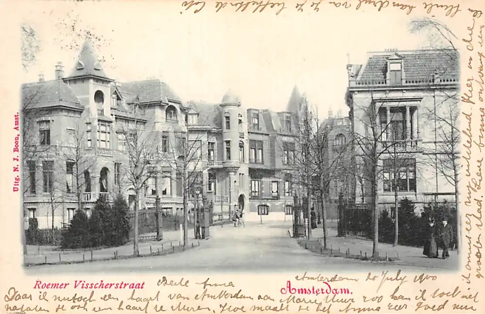 Uitg. N.J. Boon, Amsterdam. Mooie gelopen ansichtkaart met postzegel en stempels 1900.
