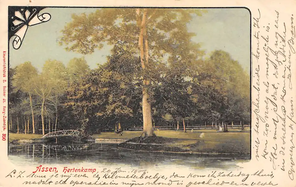 Kleurenlichtdruk S. Bakker Jz. 390. Gelopen ansichtkaart met postzegel en stempels 1901.