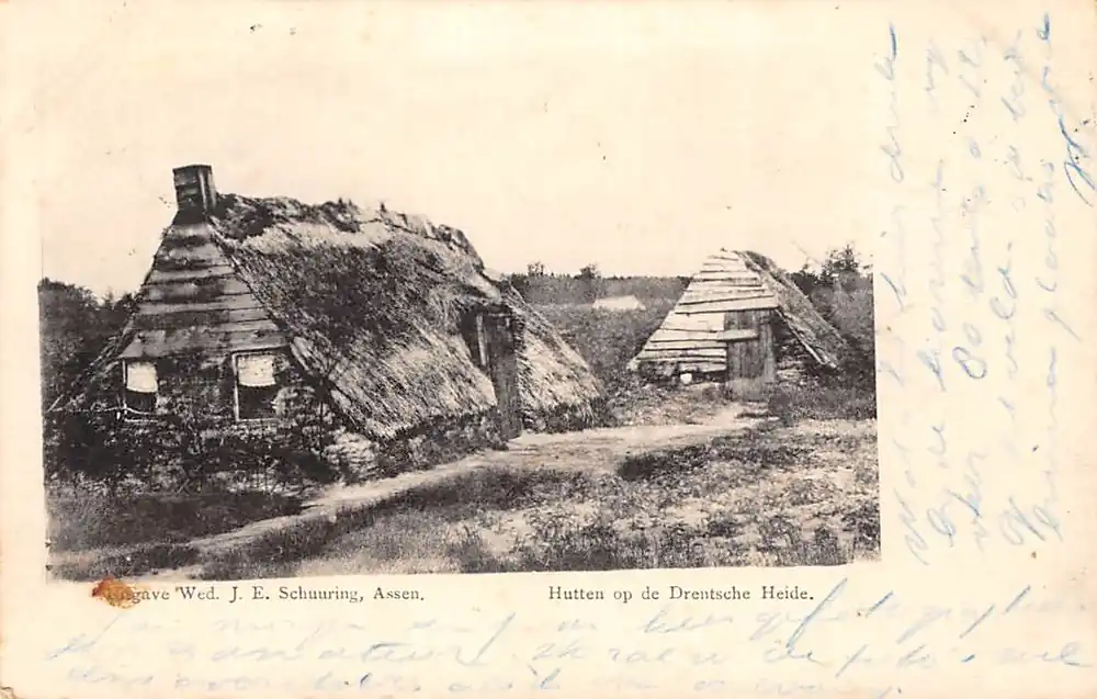 Uitg. Wed. J.E. Schuuring, Assen. Vlekje linksonder. Gelopen ansichtkaart met postzegel en stempels 1900.