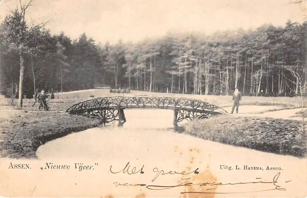 Assen Nieuwe Vijver met houten bruggetje 1900 Drenthe HC47492 Tani