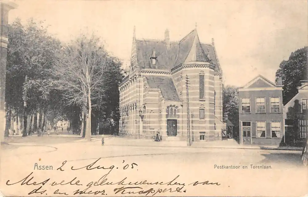 Uitg. van G.F. Hummelen, Assen. Mooie gelopen ansichtkaart met postzegel en stempels 1905.