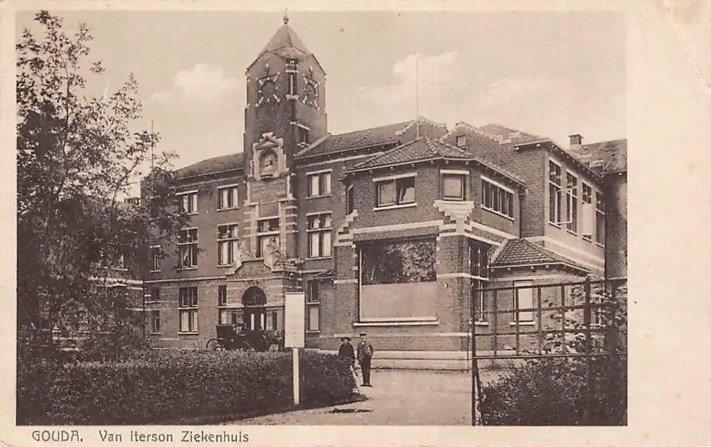 Autentyczny Gouda Van Iterson Ziekenhuis met paard en wagen 1943 De la Reylaan HC52693