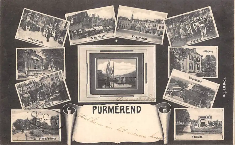 Uitg. J.H. Koop. Mooie gelopen ansichtkaart met drie postzegels en stempels begin 1900.