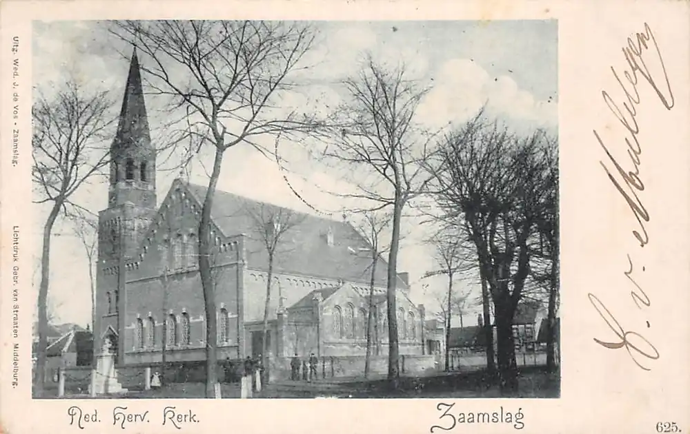 Uitg. Wed. J. de Vos – Zaamslag. 625. Gebrs. van Straaten. Mooie gelopen ansichtkaart met postzegel en stempels 1901.