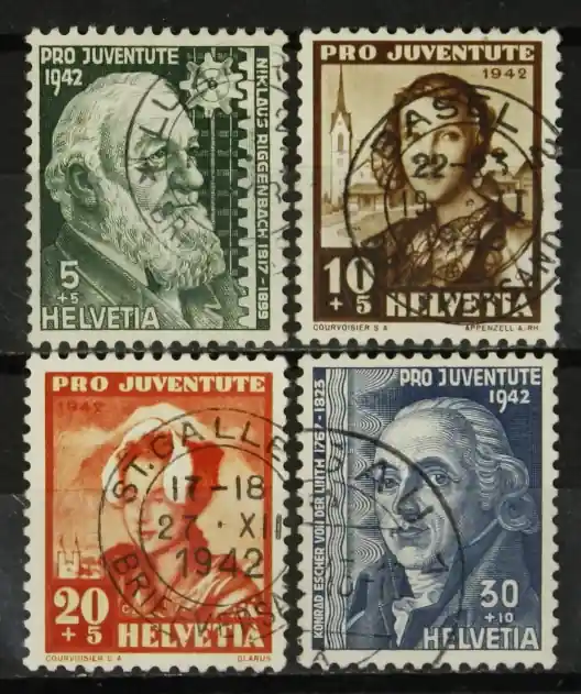 Zwitserland 1942, Michel 412-415, Pro Juventute: Vrouwen klederdrachten (IX), complete serie, gestempeld