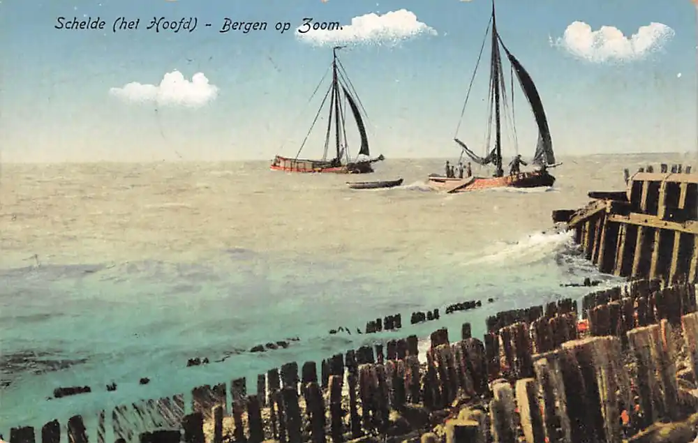 Bergen op Zoom Schelde het Hoofd met vissers schepen 1916 HC54490 Tylko dziś