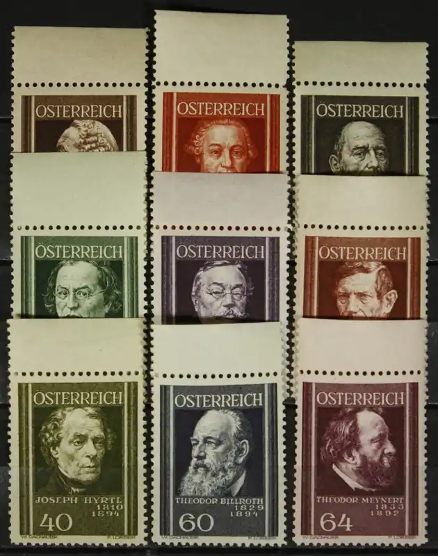 Oostenrijk 1937, Michel 649-657, Oostenrijkse artsen, complete postfrisse serie / MNH