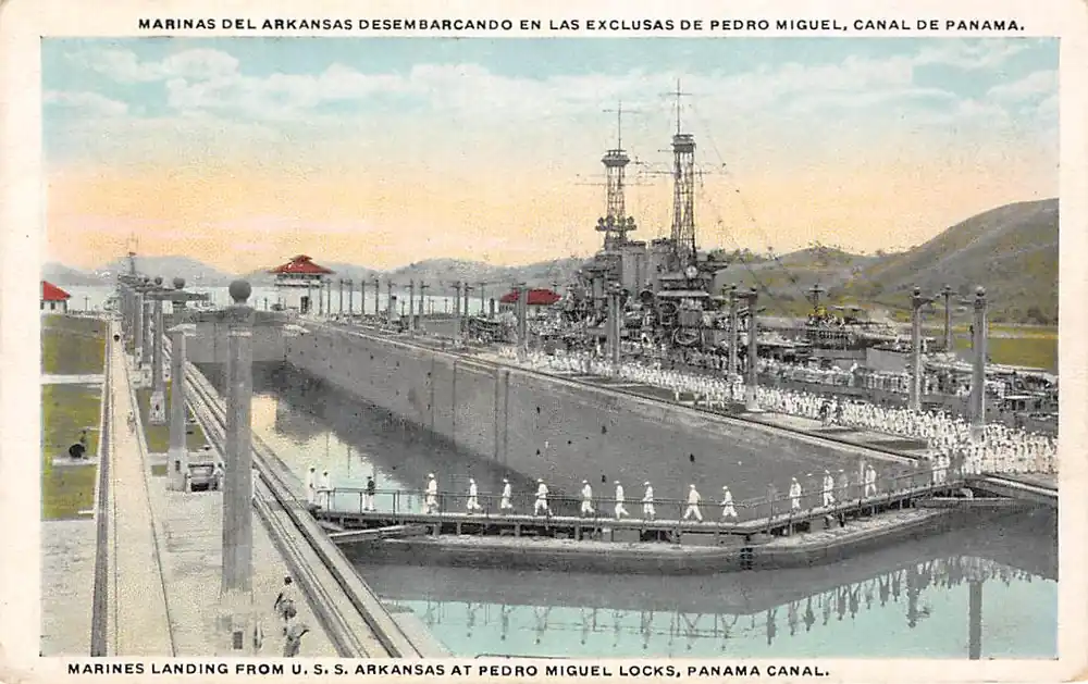 Bezpieczna płatność Panama Canal Navy Marines landing from U.S.S. Arkansas at Pedro Miguel Docks Militair Noord-Amerika HC51118