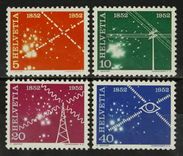Zwitserland 1952, Michel 566-569, !00 Jaar electronisch berichtenverkeer in Zwitserland, complete serie, postfris / MNH