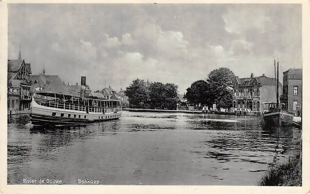 Boskoop Rivier de Gouwe met stoomschip naar Gouda Binnenvaart schepen HC59992 Darmowa dostawa