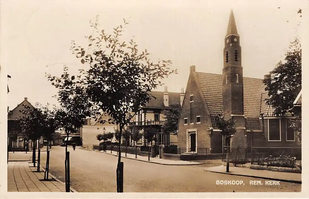 Uitgave Jongejan’s Boekhandel – Boskoop. Gelopen ansichtkaart met postzegel en stempel 1936.