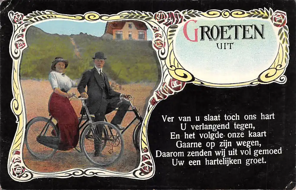 Darmowa dostawa Groeten uit onbekend Dame en heer op de fiets Wielrijden Vintage HC57223