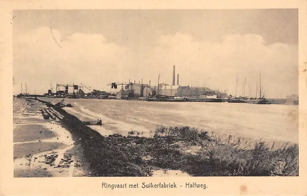 Uitgave Boekh. v\\/h Verhoog. G.C. Dijkstra, Halfweg. Gelopen ansichtkaart met postzegel en stempel 1931.