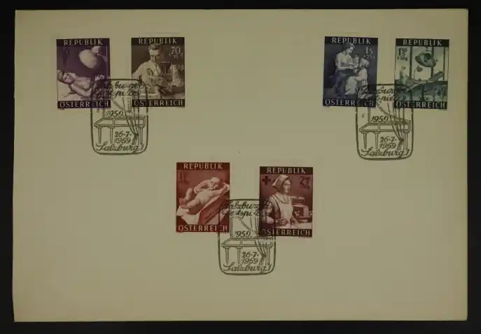 Oostenrijk 1954 (1959) Michel 999-1004 op blanco kaart met Speciaalstempel “Salzburger Festspiele”Complete serie