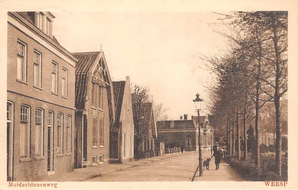 Uitg. Wed. J.H. Vorselman, Weesp. Gelopen ansichtkaart met postzegel en stempel 1941.