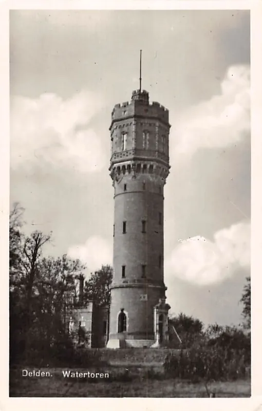 Wed. L.A. ten Voorde, Delden. Twee bruine vlakjes achter. Knikje rechts naast de bovenkant van de toren.