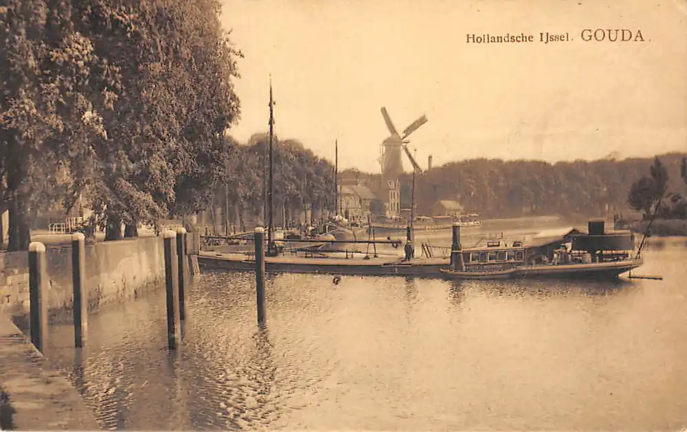 Ekspresowa dostawa Gouda Hollandsche IJssel Binnenvaartschip Rehoboth uit Rotterdam Molen Binnenvaart schepen Scheepvaart 1915 HC57436