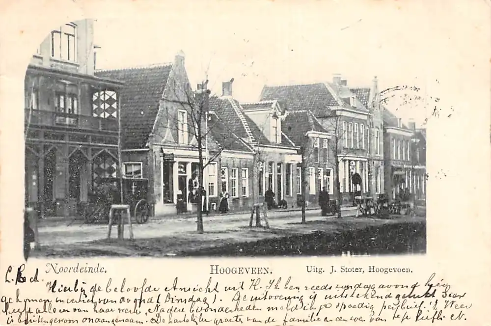Uitg. J. Stoter, Hoogeveen\\/Gelopen ansichtkaart met postzegel en stempels1900. Bovenhoekjes minieme knikjes.