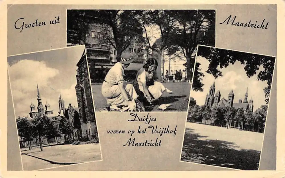 MUVA. Gelopen ansichtkaart met postzegel en stempels 1952. Hoekjes iets gesleten en minieme knikjes in witte bovenhoekjes.