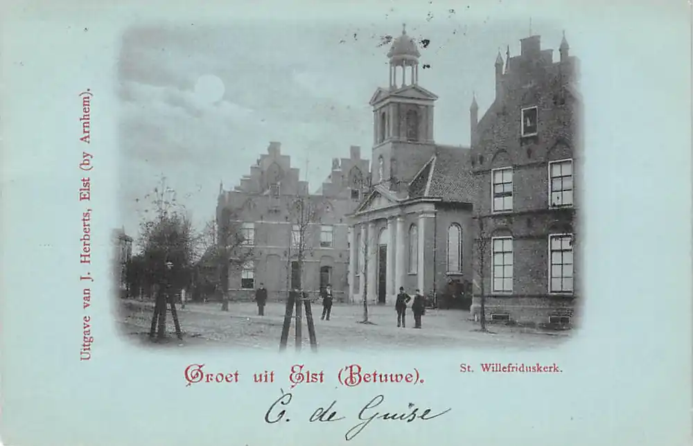Uitgave van J. Herberts, Elst). Gelopen ansichtkaart met postzegel en stempels 1900.