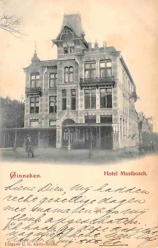 Uitgave C..G. Aarts – Breda. Mooie beschreven ansichtkaart uit begin 1900. Albumvouwtjes in hoekjes en boven- en onderrand lijken iets bijgesneden.