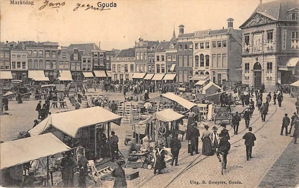 Uitg. B. Gompers, Gouda. Gelopen ansichtkaart met postzegel en stempels 1905. Bruin vlekje achterkant.