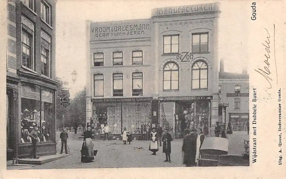 Gouda Wijdstraat met Dubbele Buurt Winkel Vroom & Dreesmann De Zon 1905 HC31974 Rabat