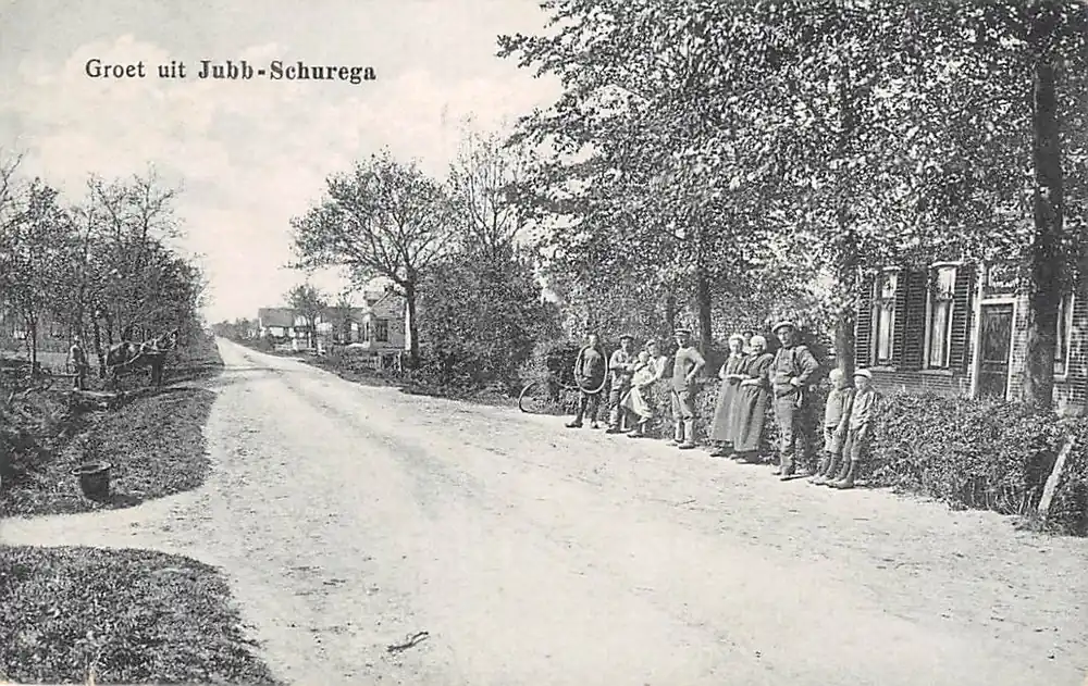 Uitgave B.S. de Haan, Jubb-Schurega. Gelopen ansichtkaart met postzegel en stempel Gorredijk 1922.