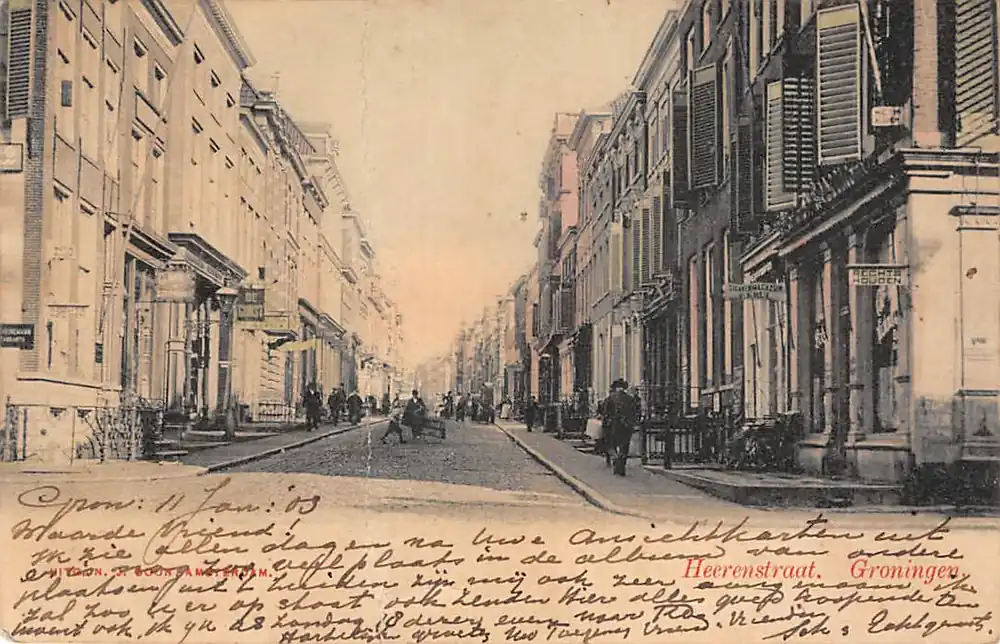 Uitg. N.J. Boon. Gelopen ansichtkaart met stempels 1903; postzegel netjes verwijderd. Links van midden knik door kaart.