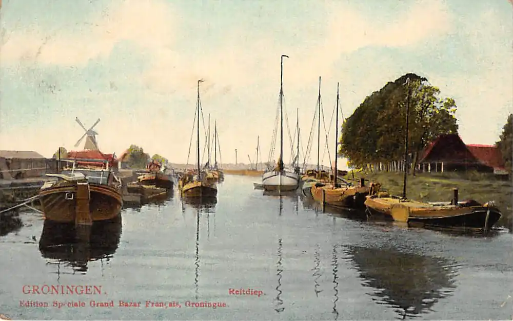 Groningen Reitdiep met Binnenvaart schepen en molen 1908 Scheepvaart HC54480 Oferta limitowana