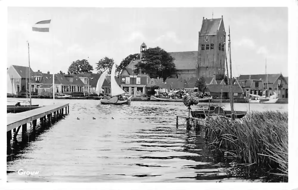 Uitg. Fa. v.d. Spoel & Co. Grouw. 457. Mooie gelopen ansichtkaart met postzegel en stempel Grouw 1957.