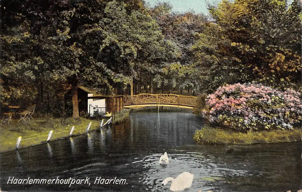 Uitg. v. W.H. van Leeuwen, Haarlem. Gelopen ansichtkaart met postzegel en stempels 1913.