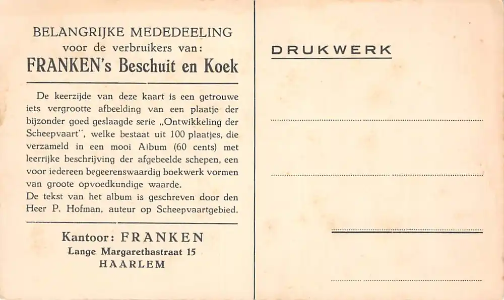 Aanbieding! Haarlem Reclame Franken’s Beschuit en Koek Lange Margarethastraat 15 Voorkant Vissers schip op het strand te Katwijk HC49322 Nowość€ 3,00 Oorspronkelijke prijs was: € 3,00.€ 1,50Huidige prijs is: € 1,50. Haarlem Reclame Franken's Beschuit en Koek Lange Margarethastraat 15 Voorkant Vissers schip op het strand te Katwijk HC49322 Nowość aantal Toevoegen aan winkelwagen Artikelnummer: SK0090668-PL20260210-160135 Categorie: Postzegels Beschrijving Beschrijving Ongelopen ansichtkaart. Formaat 9 x 15 cm. Gerelateerde producten Aanbieding! Santpoort Huize Duin en Kruidberg Bloemendaal Haarlem Kasteel HC60960 Wyprzedaż € 3,00 Oorspronkelijke prijs was: € 3,00.€ 1,50Huidige prijs is: € 1,50. Toevoegen aan winkelwagen Aanbieding! Autentyczny Oudenbosch St. Pieter 1948 KLM Luchtfoto No. 7085 HC60956 € 4,00 Oorspronkelijke prijs was: € 4,00.€ 2,00Huidige prijs is: € 2,00. Toevoegen aan winkelwagen Aanbieding! Rotterdam De Doelen omstreeks 1694 Reclame Cacao & Chocolaad A. Driessen HC60931 Najlepsza cena € 2,50 Oorspronkelijke prijs was: € 2,50.€ 1,25Huidige prijs is: € 1,25. Toevoegen aan winkelwagen Aanbieding! Oirschot Hotel de Zwaan met Rijkesluisstraat 1952 Noord-Brabant HC60898 Zamów teraz € 5,00 Oorspronkelijke prijs was: € 5,00.€ 2,50Huidige prijs is: € 2,50. Toevoegen aan winkelwagen