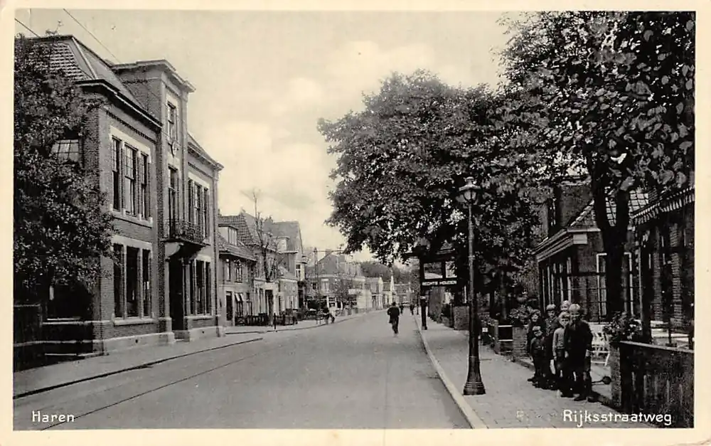 Mooie gelopen ansichtkaart met postzegel en stempel Haren 1936. Uitgave D. Wedda Haren.