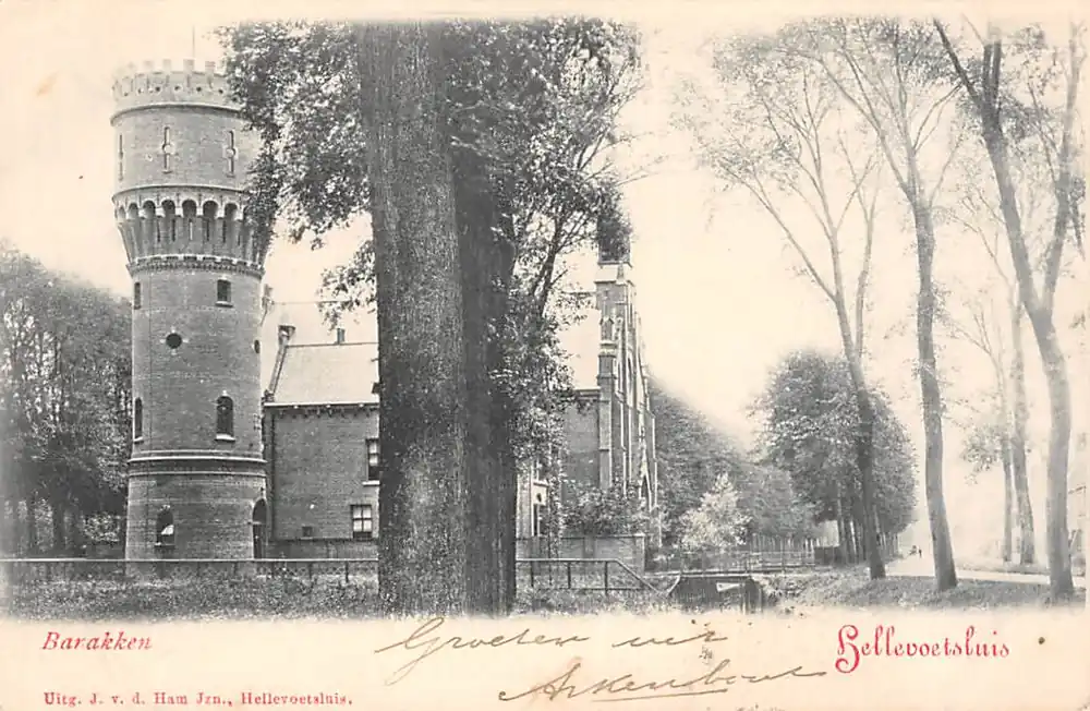 Uitg. J. v.d. Ham Jzn. Hellevoetsluis. Gelopen ansichtkaart met postzegel en stempels 1901.