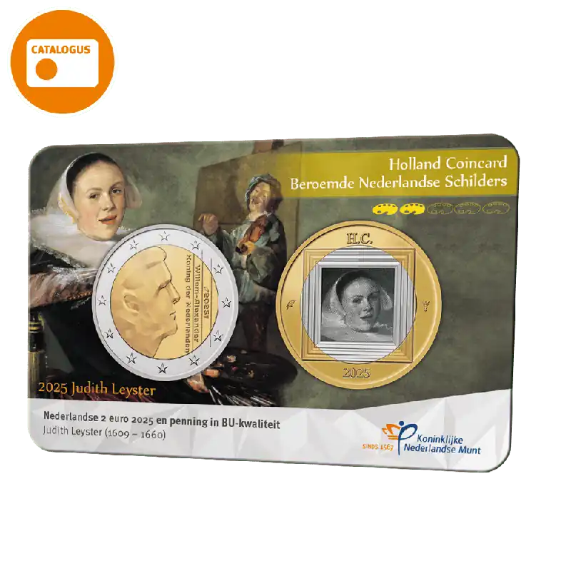De nieuwste uitgifte in de Holland Coincard serie ‘Beroemde Nederlandse Schilders’ staat volledig in het teken van de kunstschilder Frans Hals (1582 – 1666). De schilder behoort tot de meest beroemde Nederlandse schilders, samen met Vermeer en Rembrandt. Frans Hals was een productieve, vernieuwende portretschilder. Zijn levendige portretten, gemaakt met losse, energieke penseelstreken, maakten hem wereldberoemd.Het ontwerpDe coincard bevat naast een Nederlandse 2 euro munt ook een bi-colour penning in BU-kwaliteit. Op de voorzijde van de penning bevat een portret van Frans Hals, omlijst door de bekende klassieke schilderlijst. De keerzijde van de penning toont een schildershand met de handtekening van Frans Hals. De coincard laat aan beide kanten bekende werken van de schilder zien. Op de voorzijde is een gedeelte zichtbaar van het schuttersstuk Sint Jorisschutterij (1616). De keerzijde bevat een fragment van zijn beroemde schilderij ‘Luitspeler’ (1623).Specificaties PenningMetaalBi-colourGewicht8,40 gDiameter26,50 mmKwaliteitBrilliant UncirculatedOplage4.895