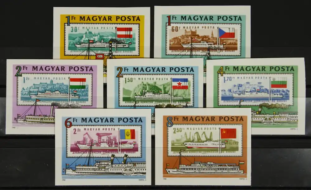 Hongarije 1981, Michel 3514-3520 B, 125 Jaar Europese Donaucommissie: Donauschepen, complete ongetande serie, postfris/MNH