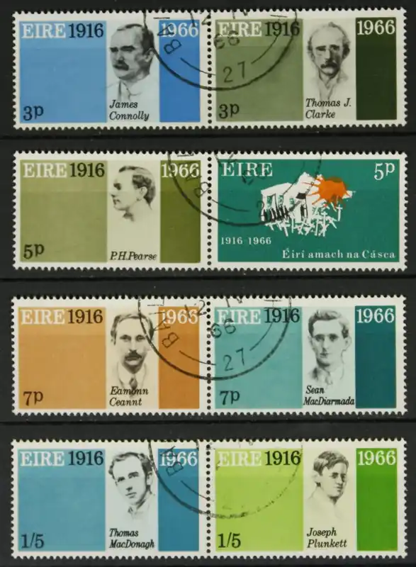 Ierland 1966, Michel 178-185 in 4 paren, Begin Paasopstand 1916 en Uitroepen Ierse Republiek, complete serie, gestempeld / used