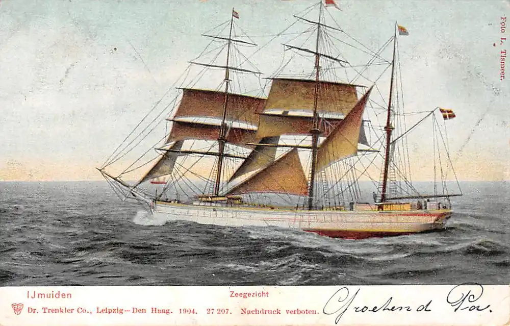 IJmuiden Zee gezicht met Driemaster 1904 Scheepvaart Schepen HC54529 Tani