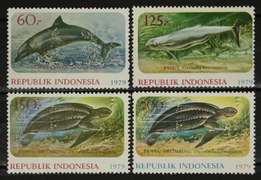 Indonesië 1979, Michel 944-947, Natuurbescherming (III): Vissen / dolfijnen, postfrisse serie incl. blokzegel / MNH