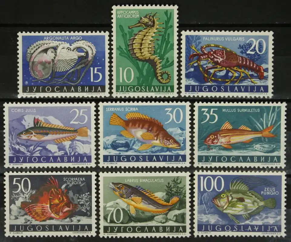 Joegoslavië 1956, Michel 795-803, Joegoslavische fauna: Dieren uit de Adriatische Zee, complete postfrisse serie / MNH