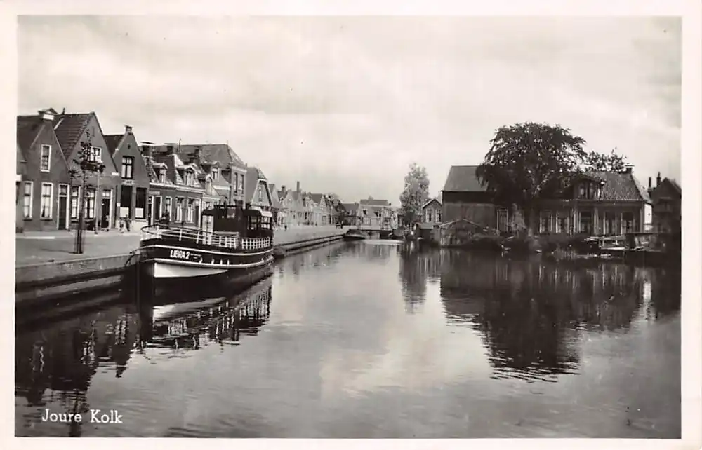Uitg. A.B. Holtrop, Joure. Gelopen ansichtkaart met drie postzegels en twee stempels 1948.