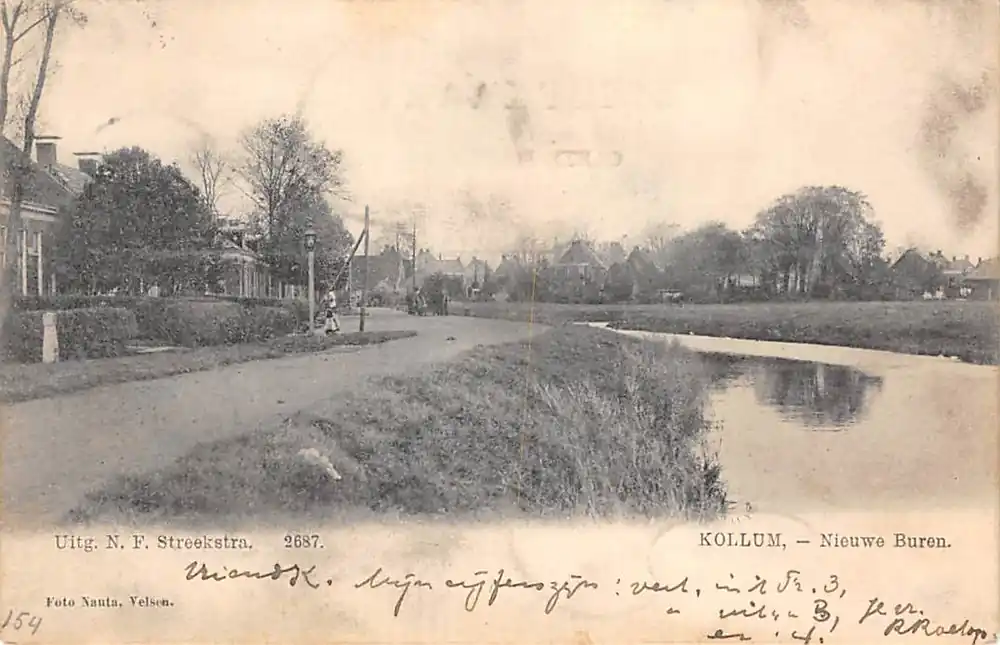 Uitg. Nauta. Gelopen ansichtkaart met postzegel en kleinrondstempel Harlingen – Nieuweschans 1905.