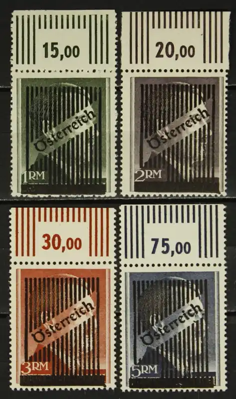 Oostenrijk 1945, Zegels met “Gitter Aufdruck”, complete postfrisse serie (hoge waarden), randstukken (!) / MNHMet attest Sturzeis.