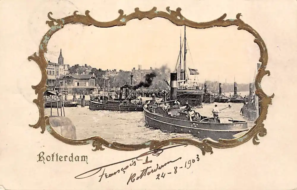 Kup teraz Rotterdam Maasgezicht met sleepboten Binnenvaart schepen Scheepvaart 1903 Relief kaart HC54711