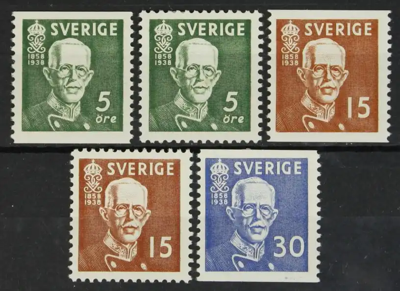 Zweden 1938, Michel 250-252 A en B, 80e Geboortedag van Koning Gustav V, ongebruikt (plakkerspoor)/MH