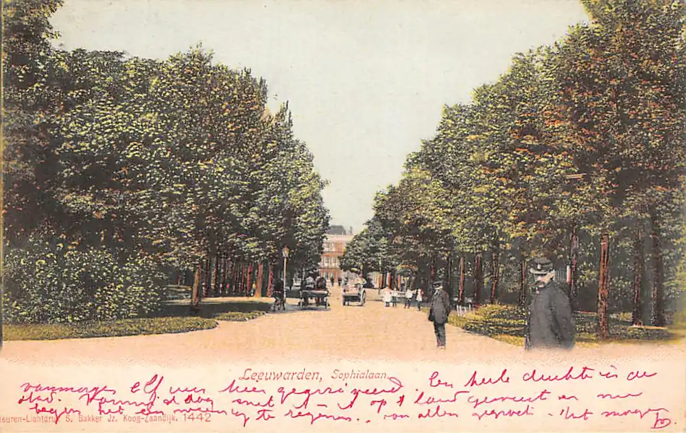Kleuren-Lichtdruk S. Bakker Jz. 1442. Gelopen ansichtkaart met postzegel en stempels 1905.