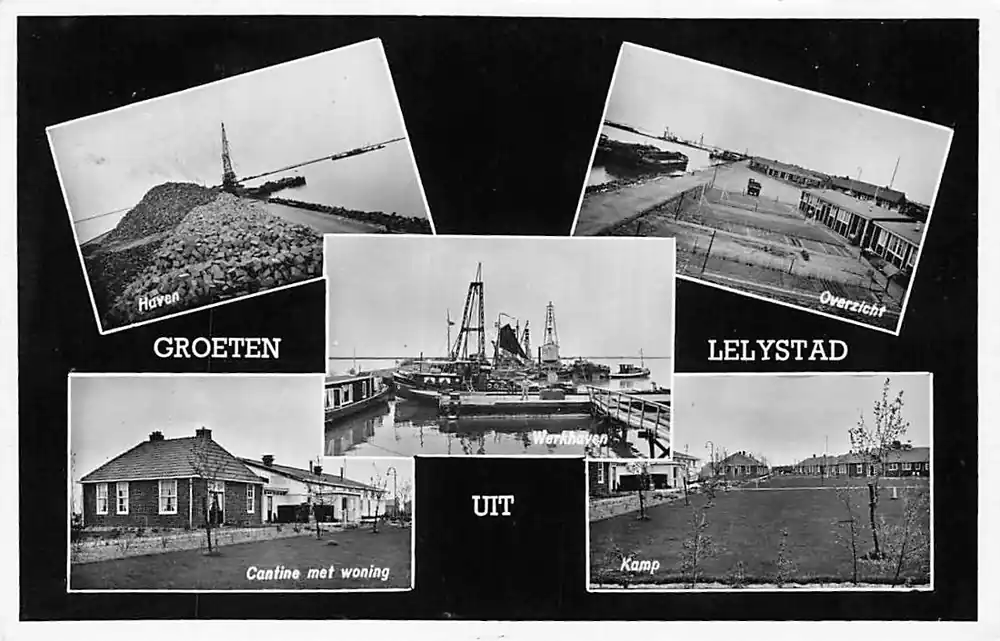Mooie gelopen ansichtkaart met postzegel en stempel Lelystad 1959. E.J. Splinter, Kantine Lelystad. 559.